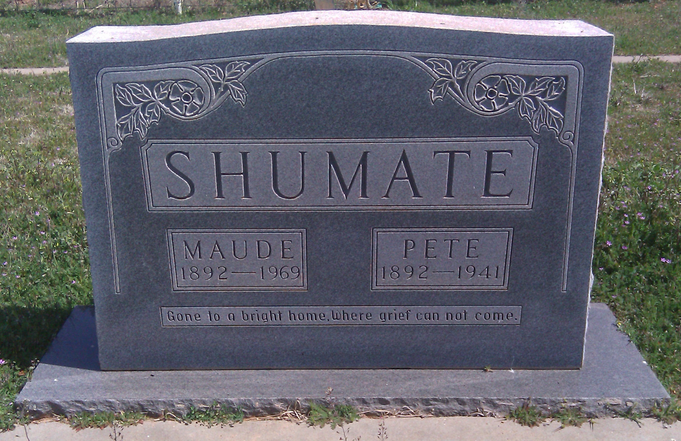 Headstone - Pete & Maude Shumate