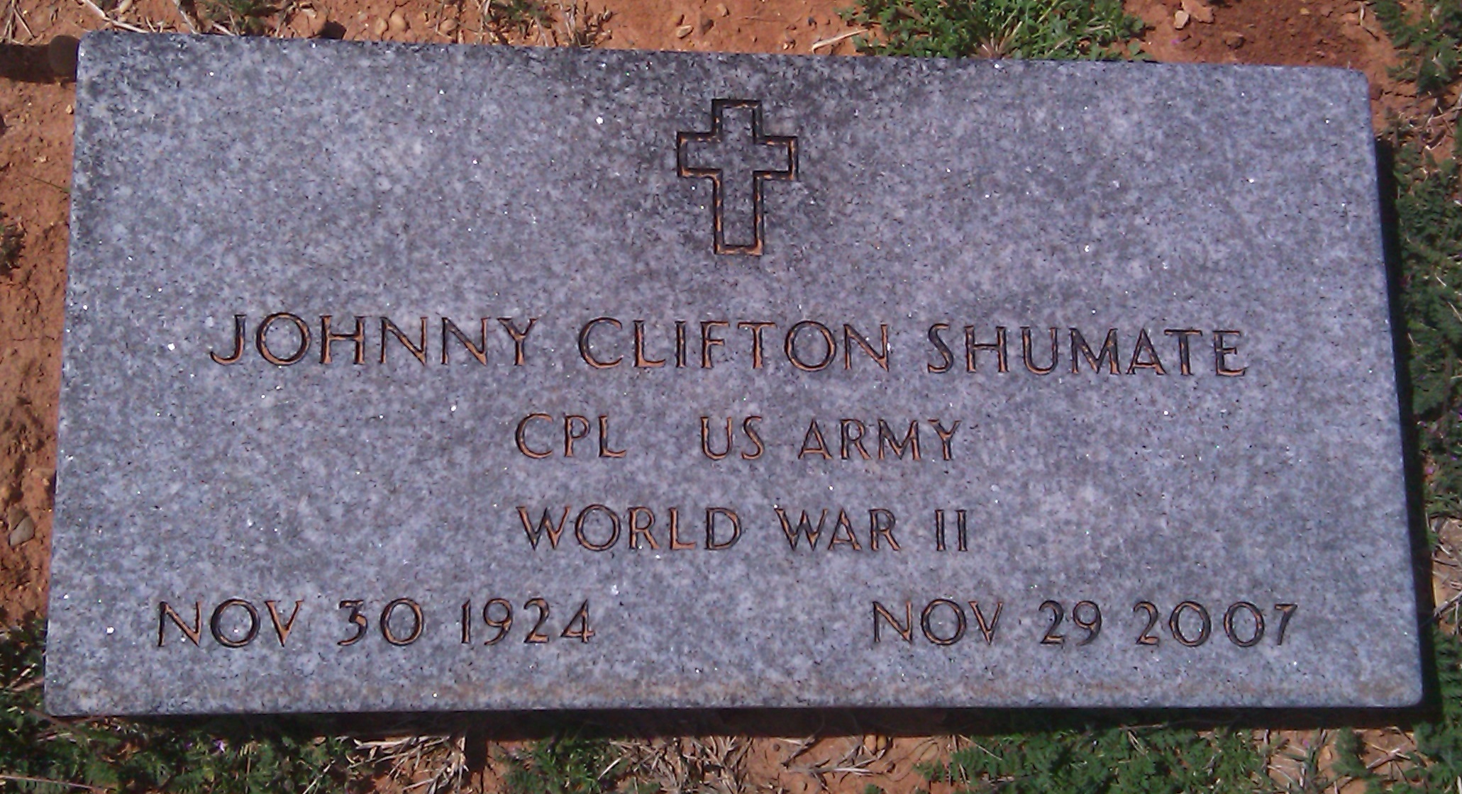 Headstone - Johnny Clifton Shumate (1924-2007) Veteran Marker