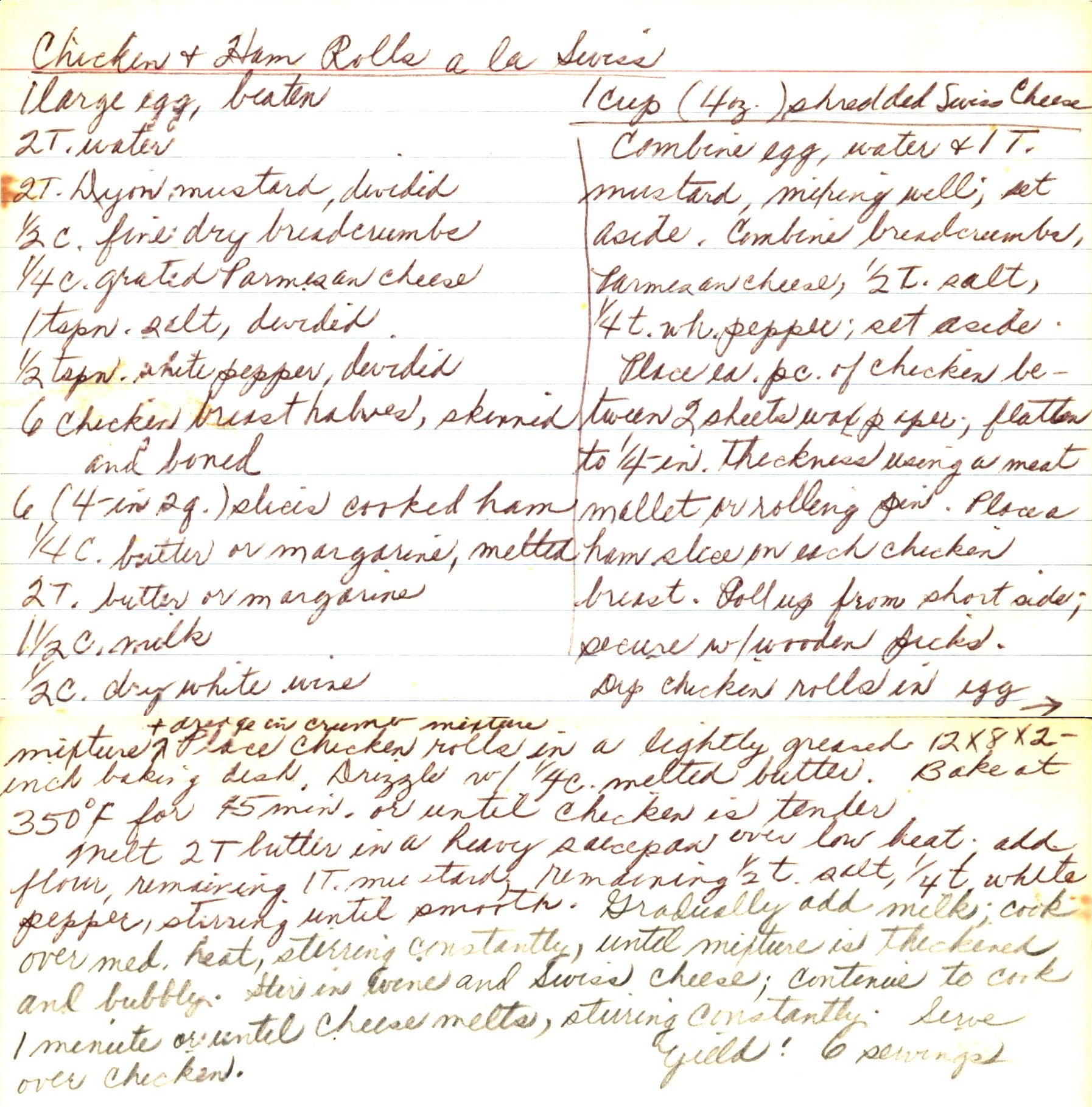 Chicken and Ham Rolls a la Swiss
