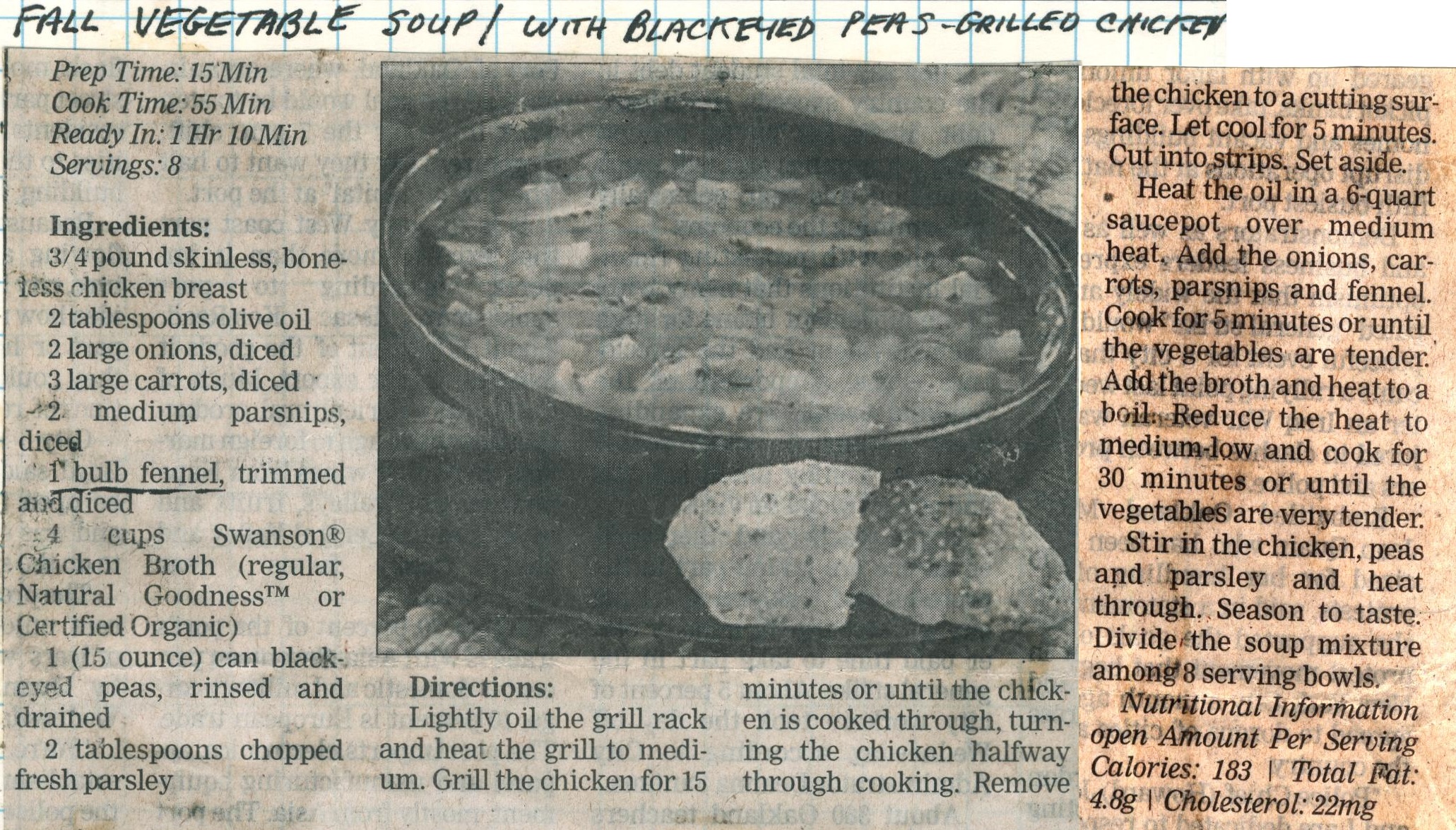 Fall Vegetable Soup with Blackeyed Peas & Grilled Chicken