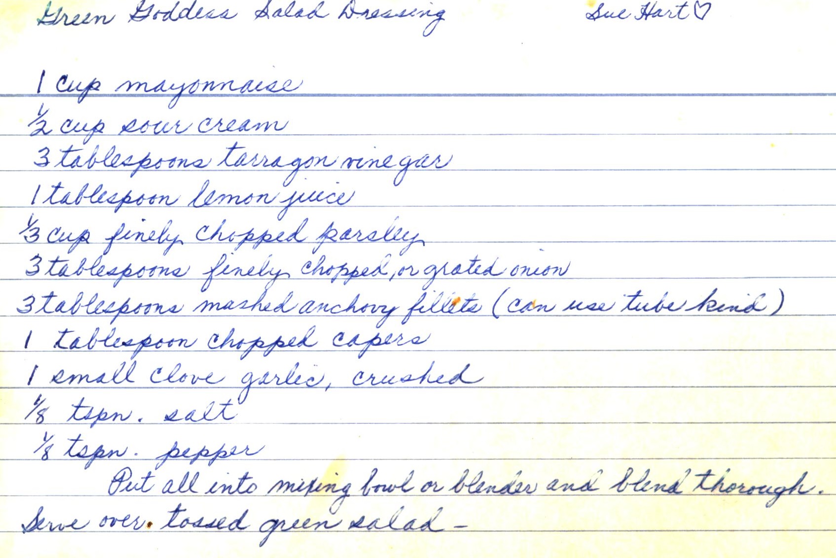 Green Goddess Salad Dressing - Sue Hart