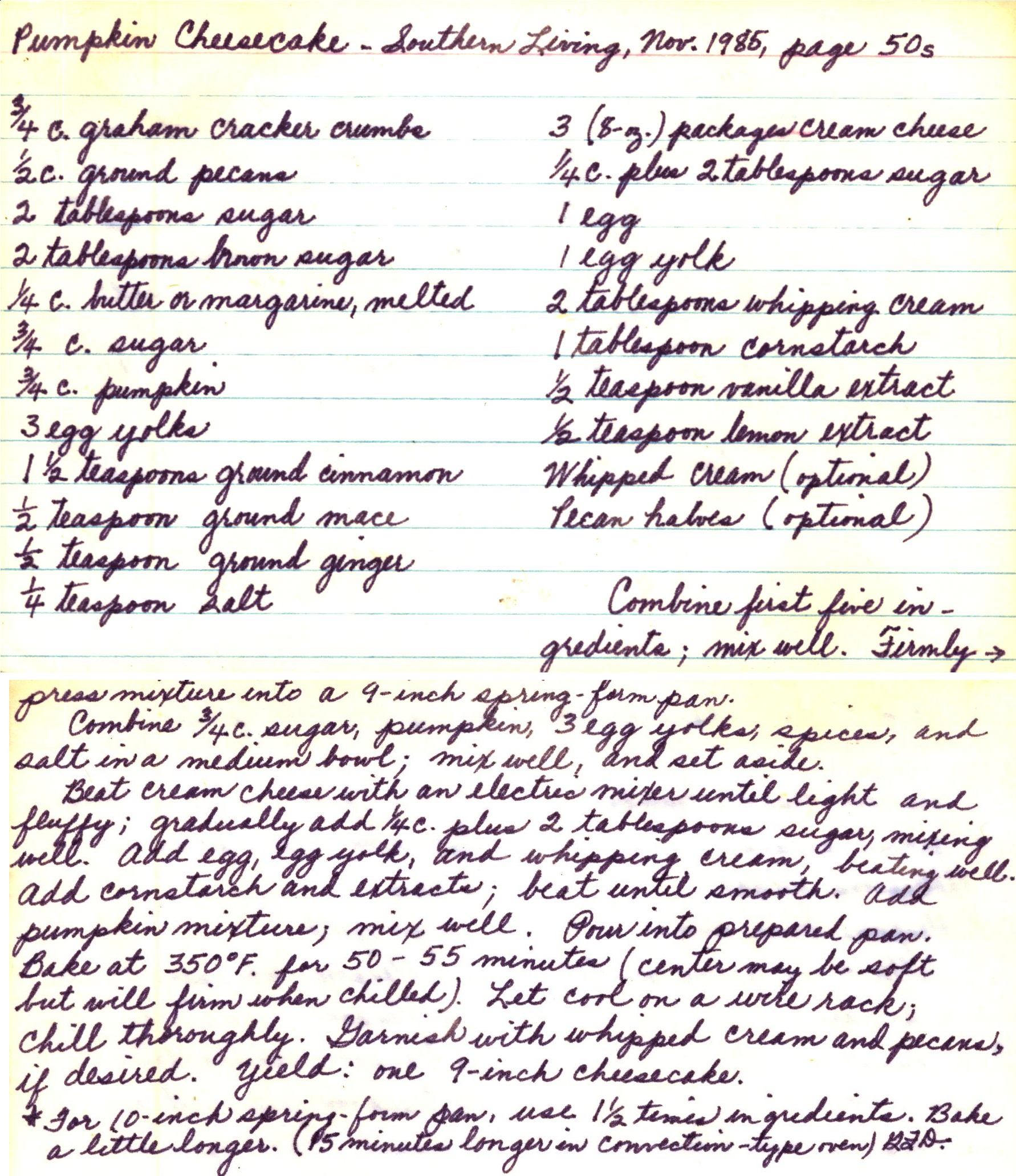 Pumpkin Cheesecake - Southern Living