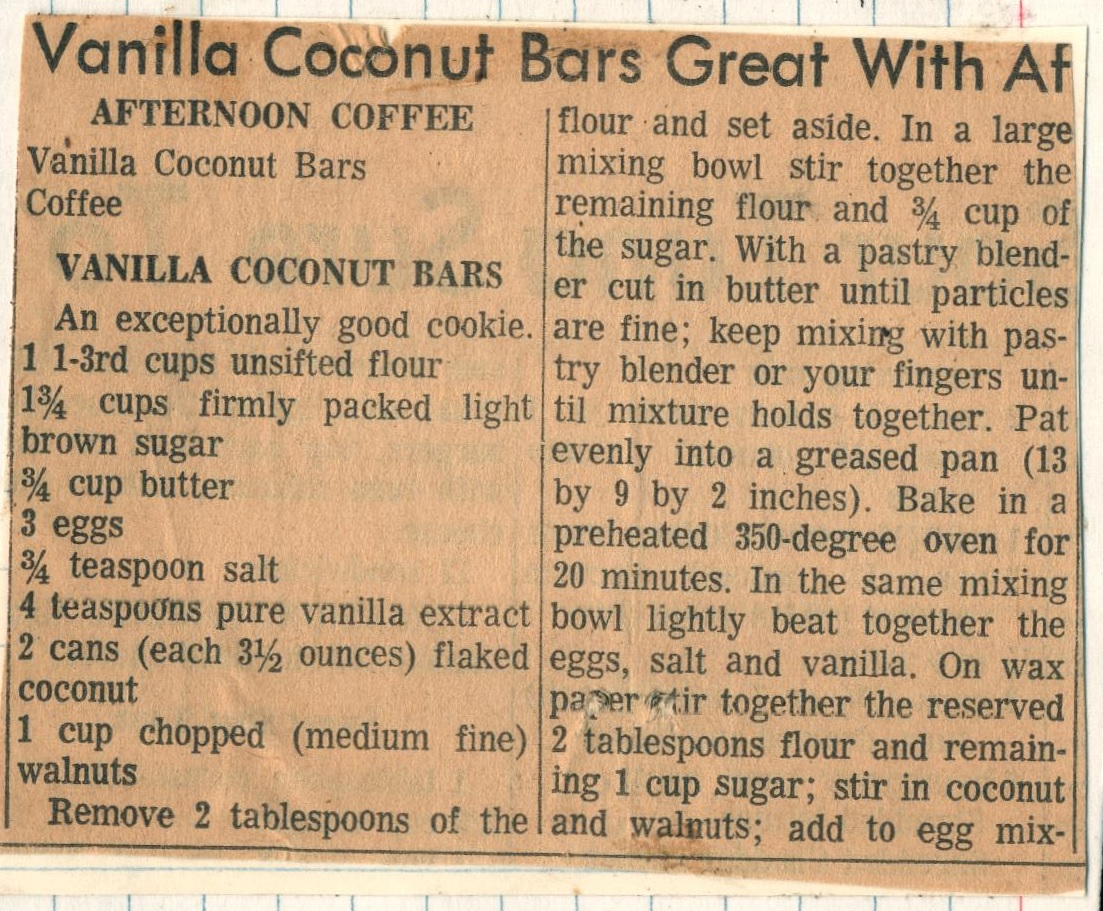 Vanilla Coconut Bars