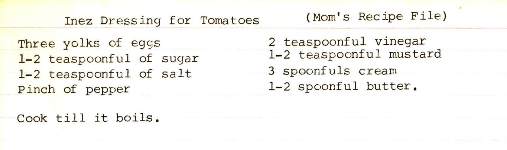 Inez Dressing for Tomatoes - Ethel Kisinger
