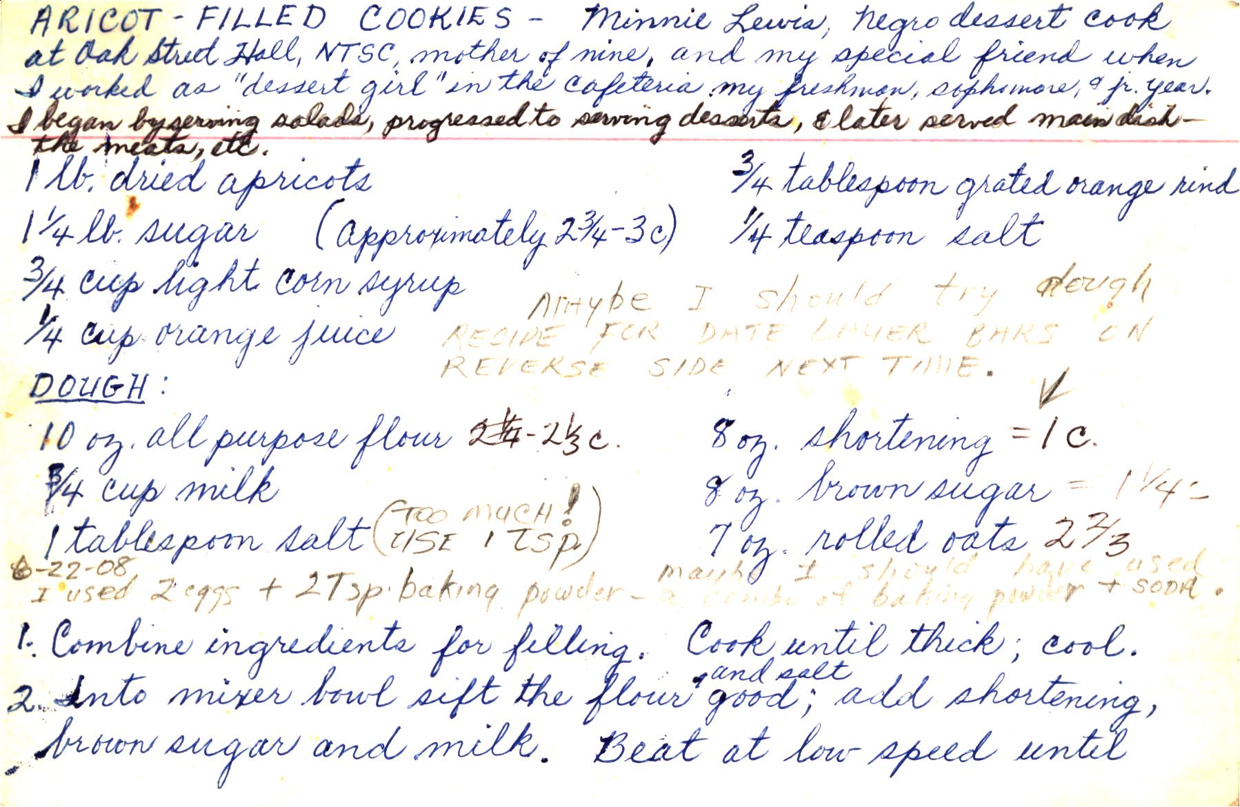 Apricot Filled Cookies - Minnie Lewis