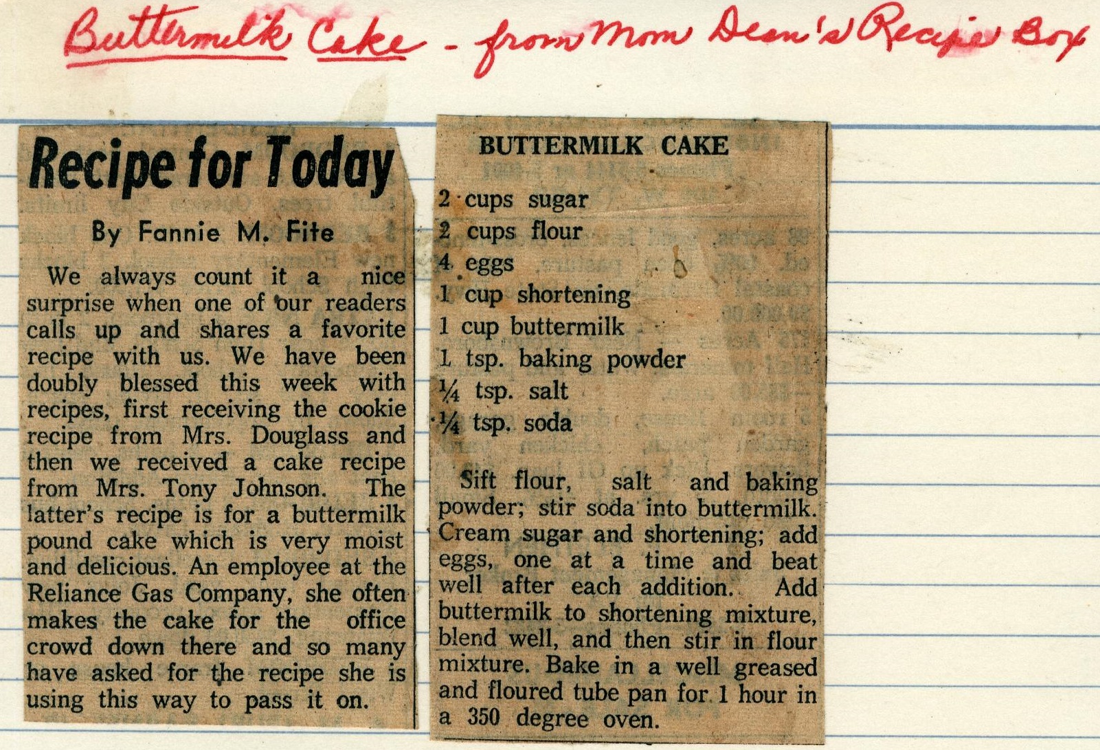 Buttermilk Cake - Fannie Fite
