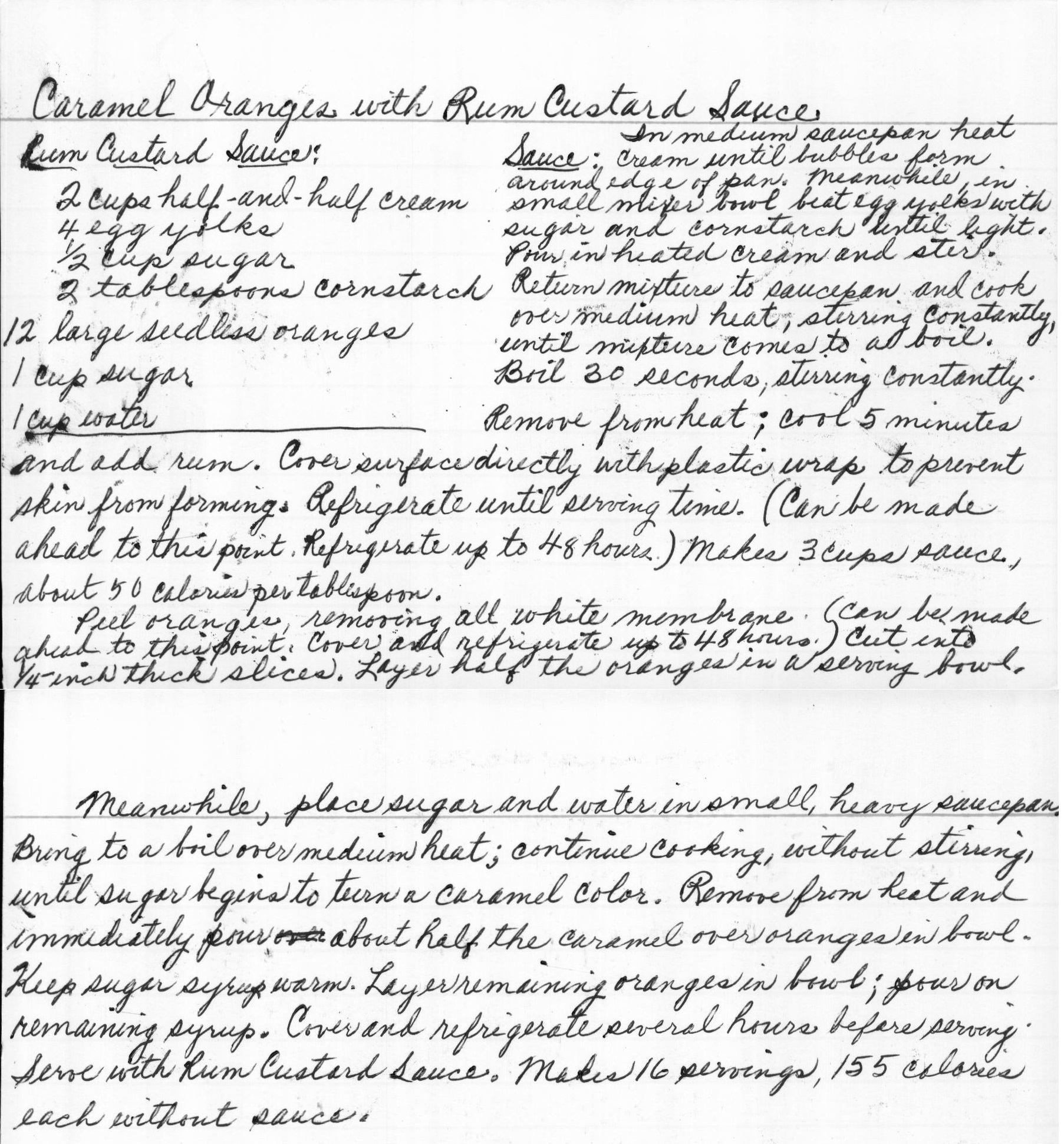 Caramel Oranges with Rum Custard Sauce