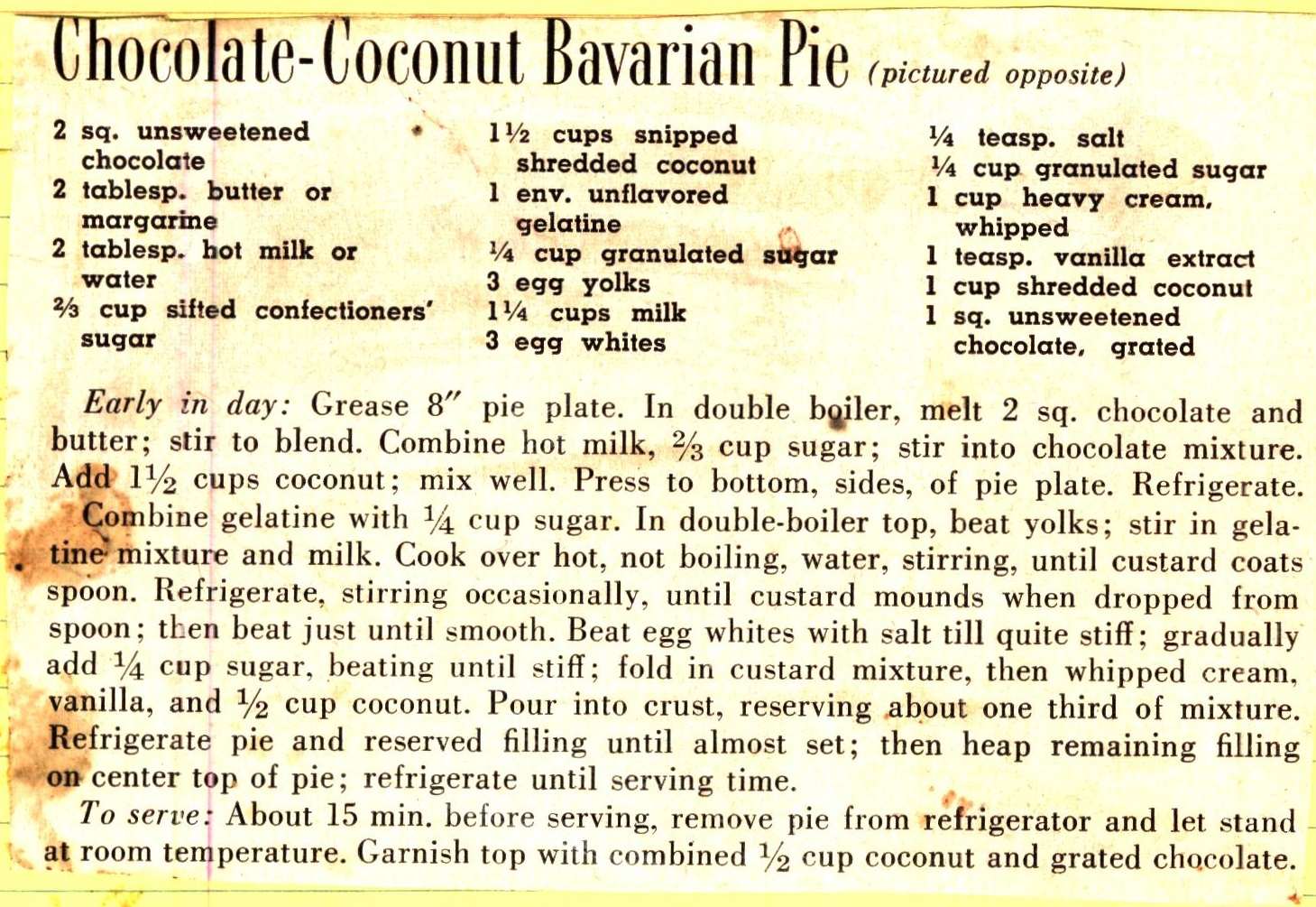 Chocolate Coconut Bavarian Pie
