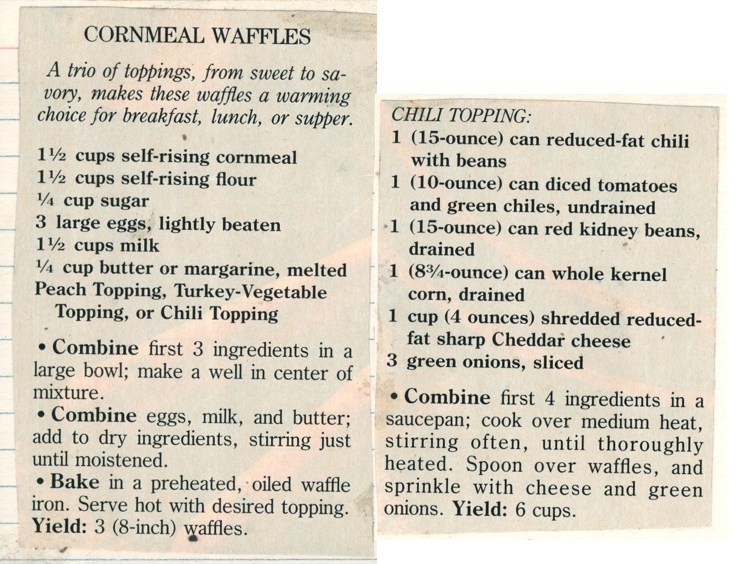 Cornmeal Waffles with Chili Topping