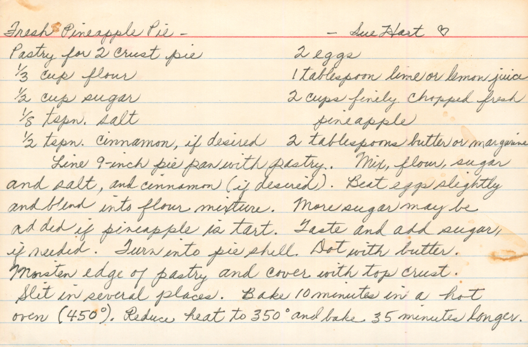 Fresh Pineapple Pie - Sue Hart