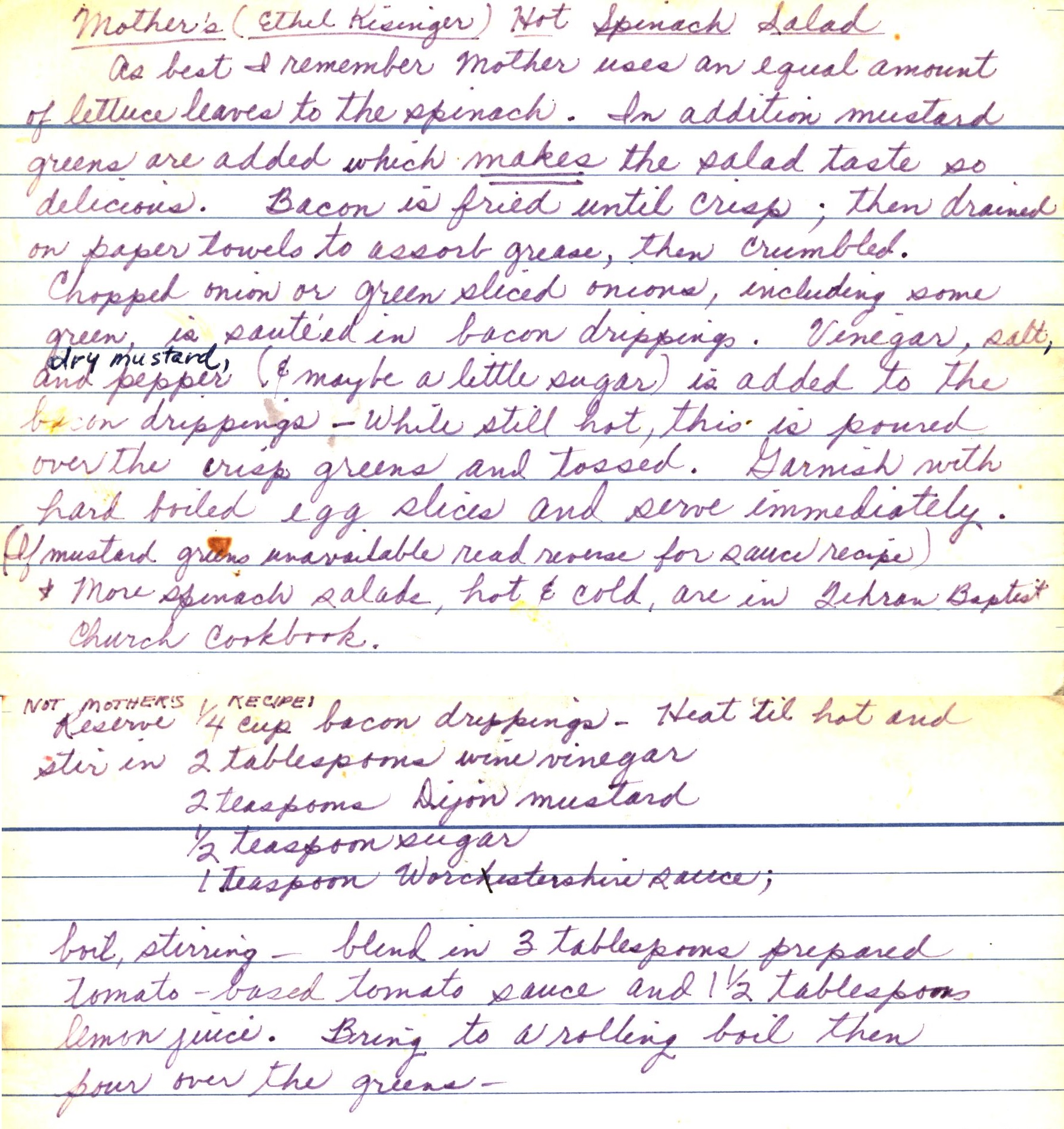 Hot Spinach Salad - Ethel Kisinger