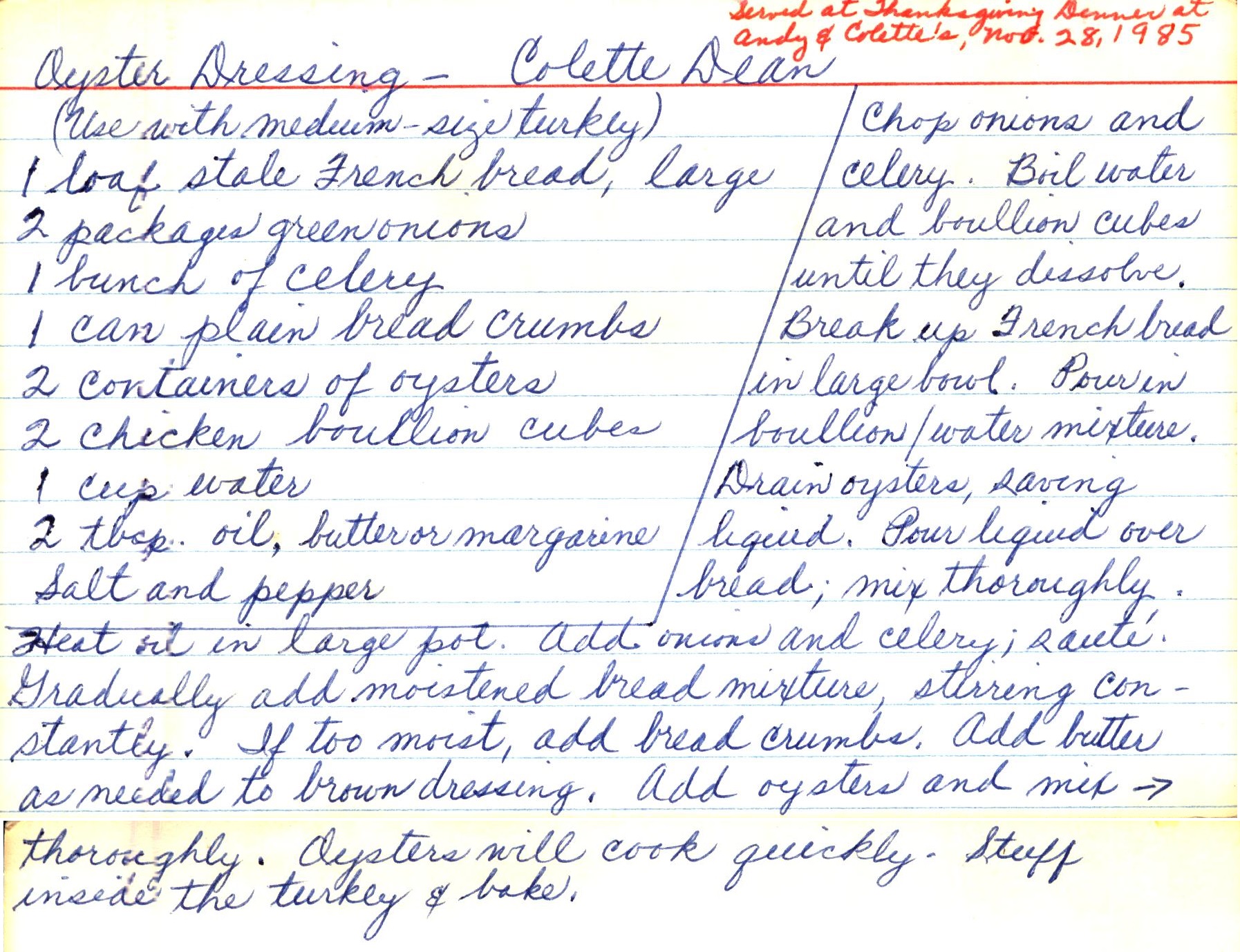 Oyster Dressing - Colette Dean